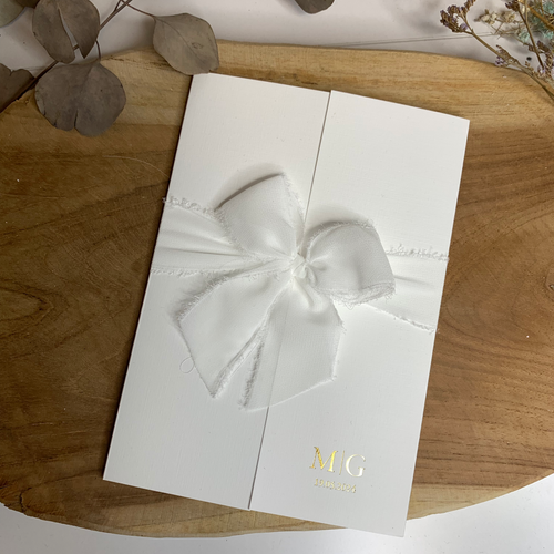 Hochzeitseinladung Elegance mit Schleife, Wachssiegel und Trockenblume -